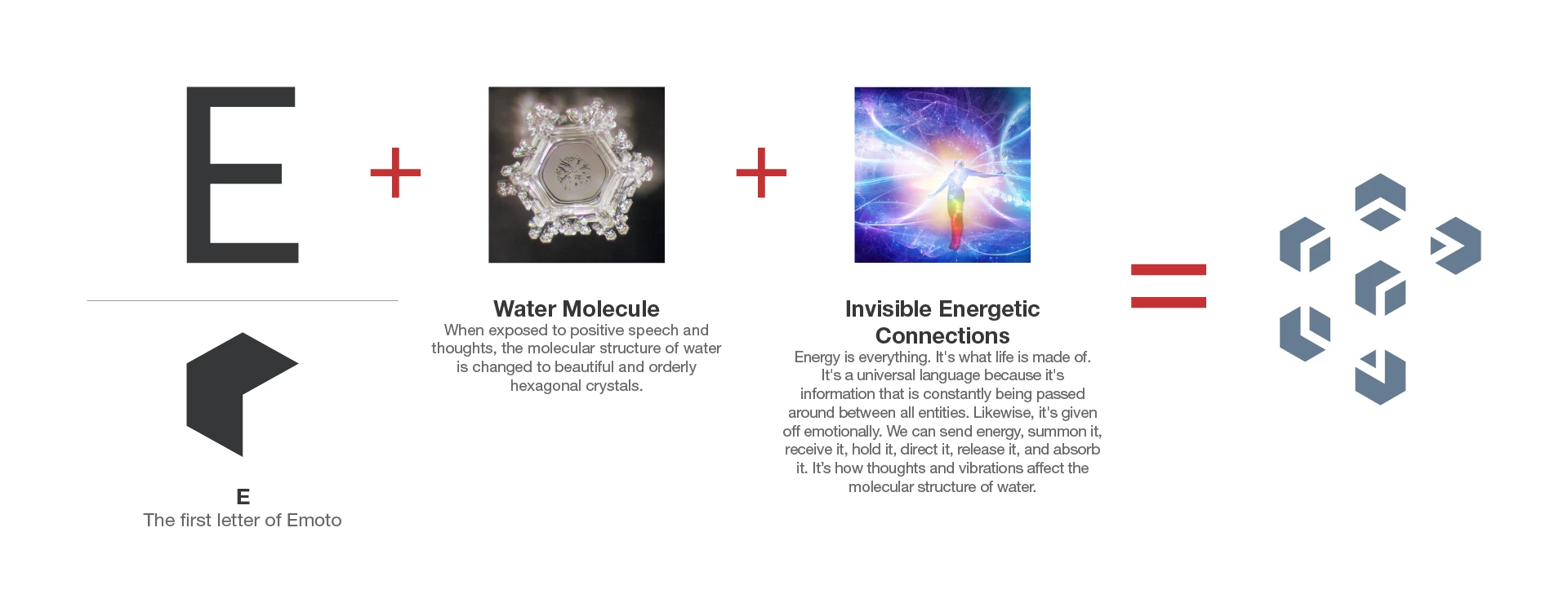 The logo serves as a reminder of the profound impact that thoughts and vibrations can have on our surroundings, including the molecular structure of water – the key ingredient in the perfumes.