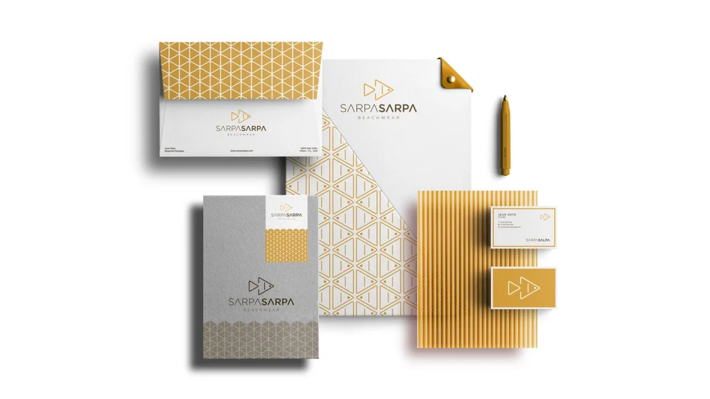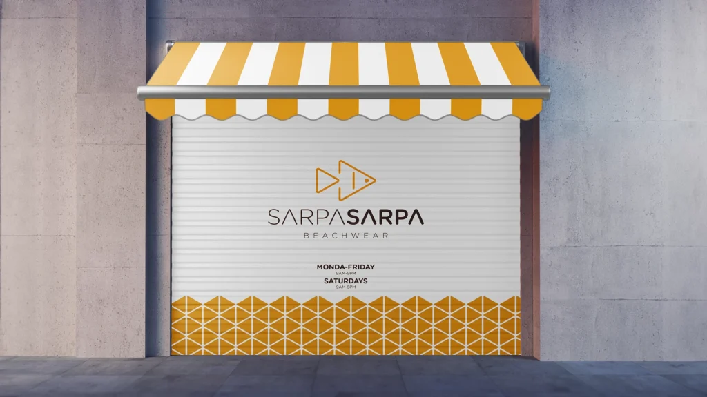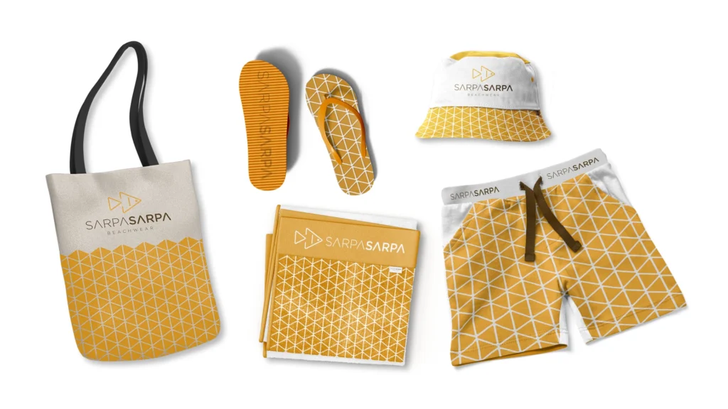 It combines geometric triangles to form a fish, symbolizing simplicity, modernity, harmony between land and sea, and the connection to ocean life, reflecting the brand’s contemporary and stylish identity.